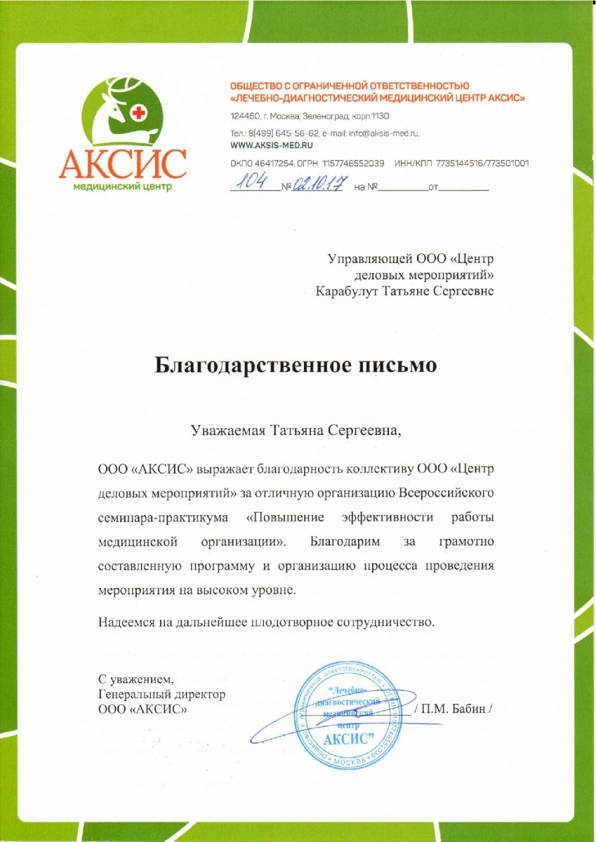 Юридическое наименование: Общество с ограниченной ответственностью «Центр деловых мероприятий»